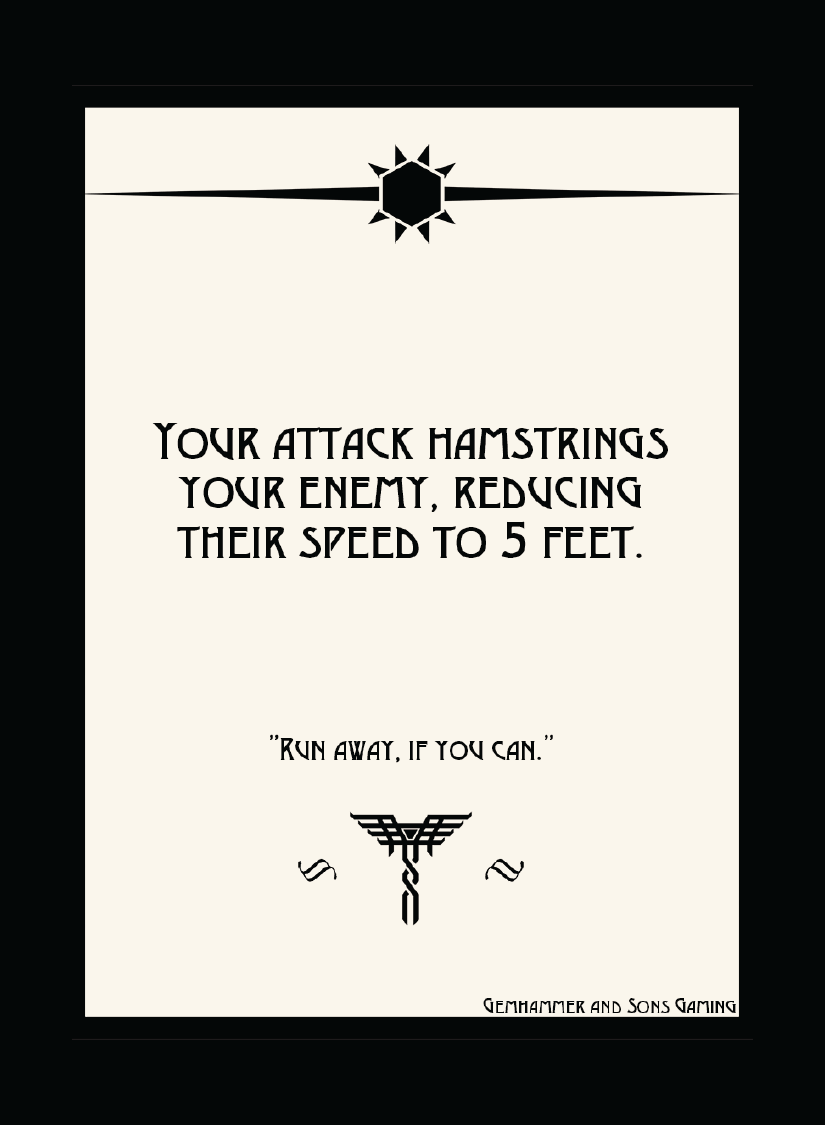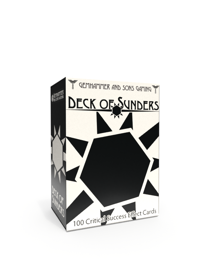 Critical Hits never hit so good! Reward your players for feats of Critical Success with the Deck of Sunders. 100 Critical Success Effect cards the provide flavor and bonuses for when Blades and Bows hit their mark in the most epic of ways.