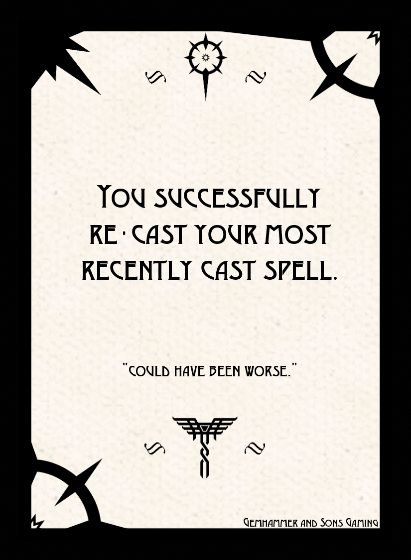 Why use a table in a book when you can give your spell caster a deck of 100 random spell effects. Simulate wild and randomized magic or use the cards as its own magical artifact. When used your spell caster may rain down thunderbolts on their enemies, they may also fill everyone's shoes with custard, it's anyones guess.