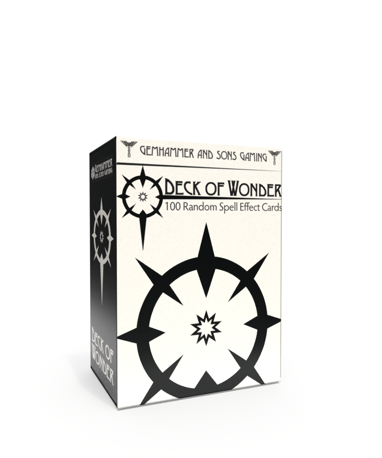 Each deck comes with 100 spell effects and the "Deck of Wonder" item description. Although we recommend the deck for use with D&D and Pathfinder, The spell effects aren't rule specific and can be used in any campaign.