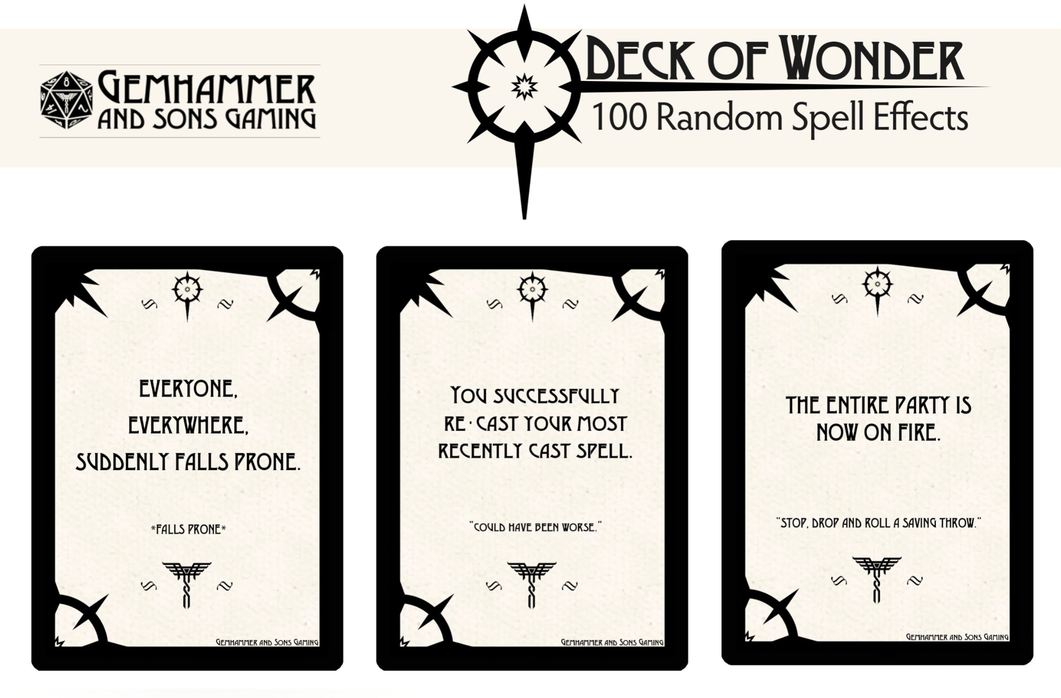 Need even more wonder at your game table? Well now you can add special wondrous effects on the fly with 50 blank spell effect cards for your Deck of Wonder. Grab a marker and get creative!