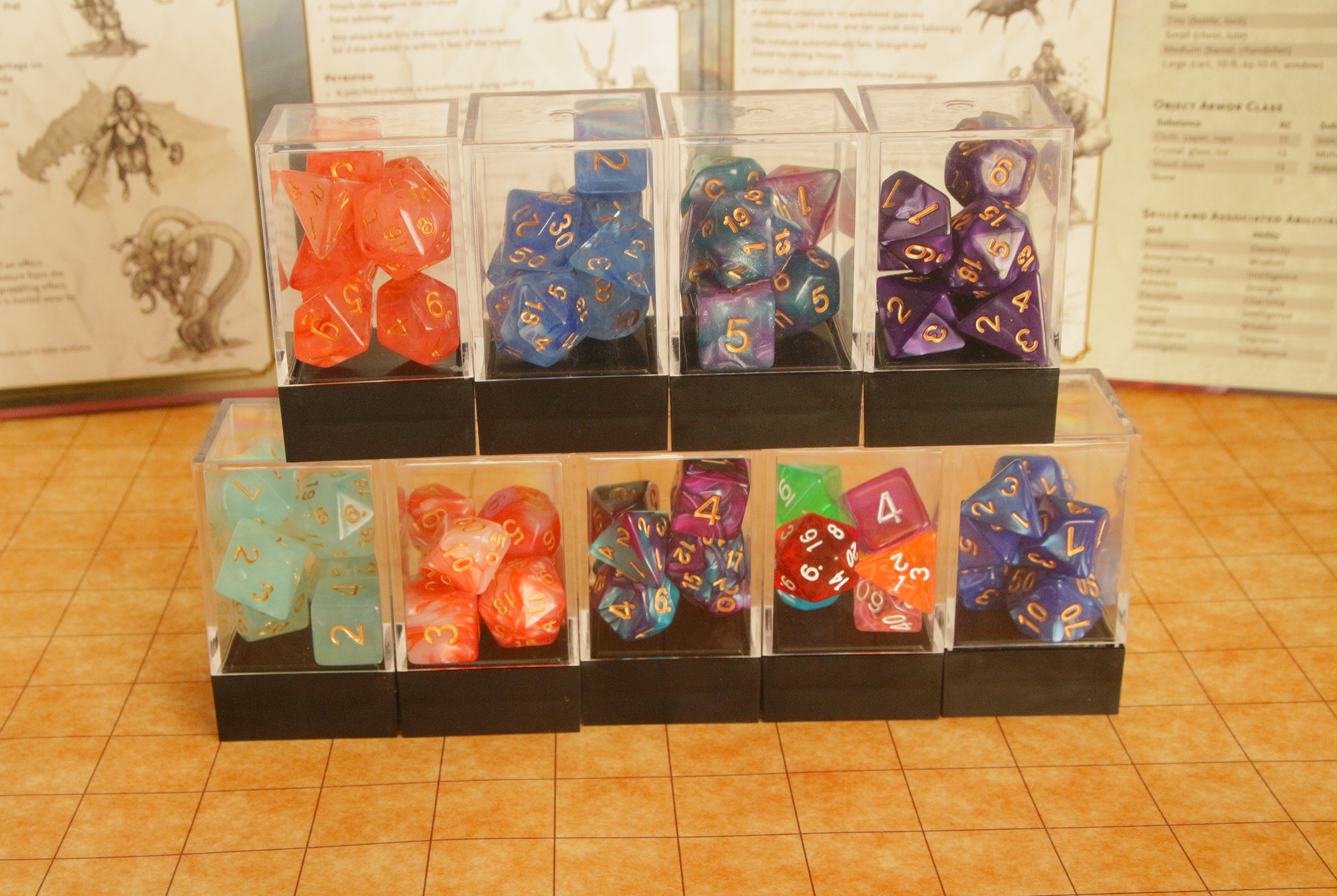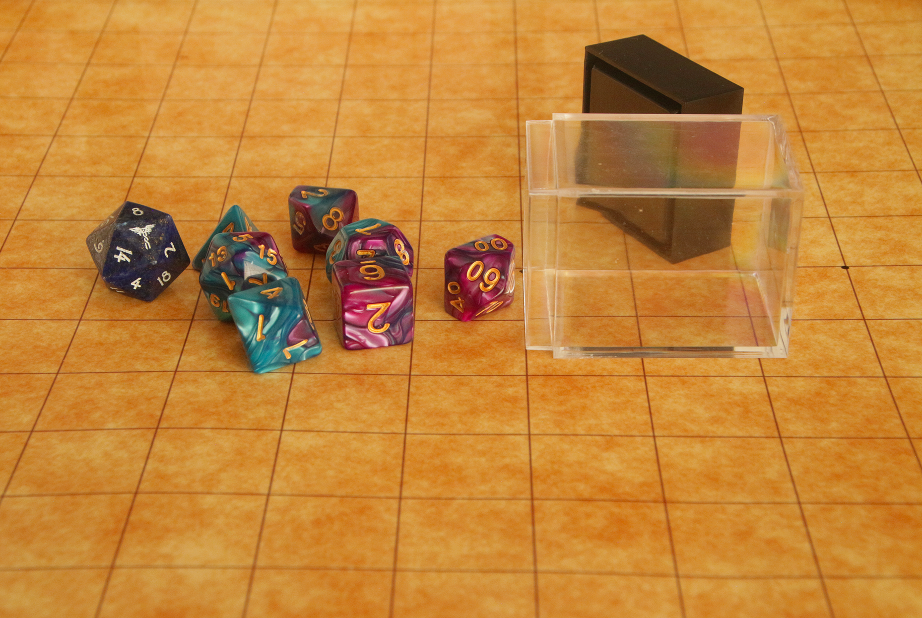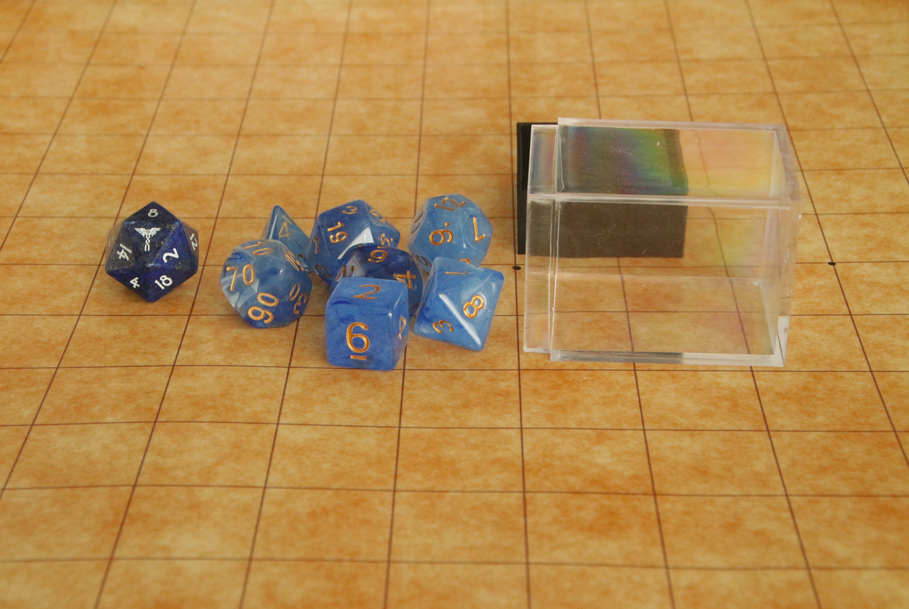 (The lapis dice pictured is shown for scale and is not sold with these products.)