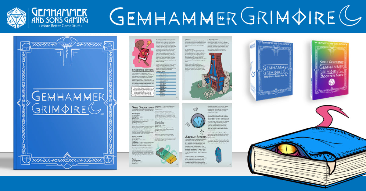 "I’ll never forget my first time thumbing through a Player’s Handbook (or the second, or the third), and the Gemhammer Grimoire seeks to give players that same excited feeling with loads of all-new content. All of Gemhammer’s products carry the distinct humor and genuine care of a gaming group that helps one another to develop unique, humorous, and sometimes absurd ideas, and the Grimoire is no different. It’s got a lot of content, a lot of heart, and a lot for players to be excited about."