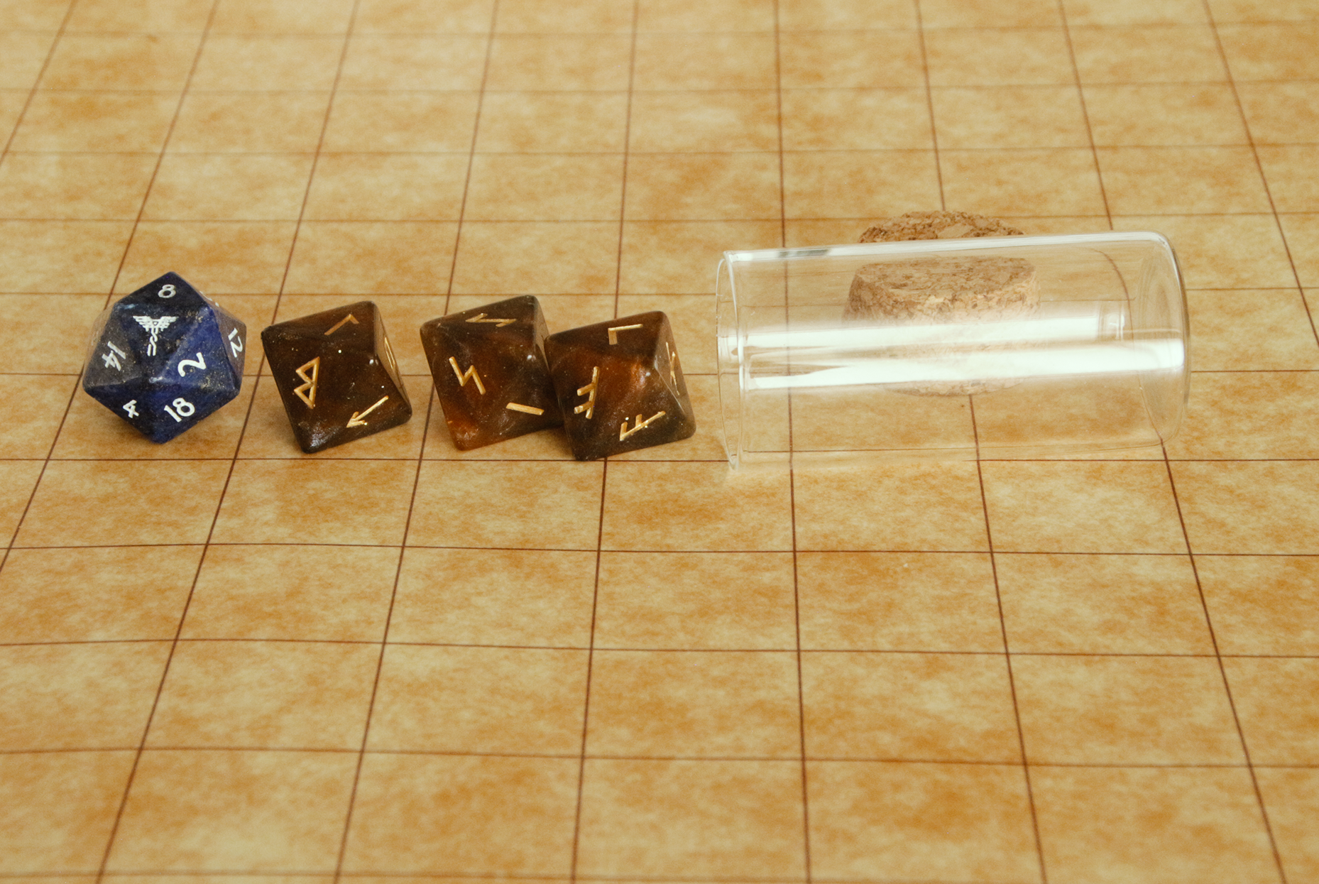 (The lapis dice pictured is shown for scale and is not sold with these products.)